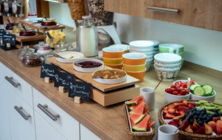 Starten Sie den Tag mit einem saisonalen und herzhaften Frühstück in unserem sonnigen Frühstücksraum, immer unter Einhaltung der Mindestabstände und Vorgaben. Gerne nehmen Sie Ihr Frühstück in „Corona-Zeiten“ auch auf Ihrem Zimmer ein.